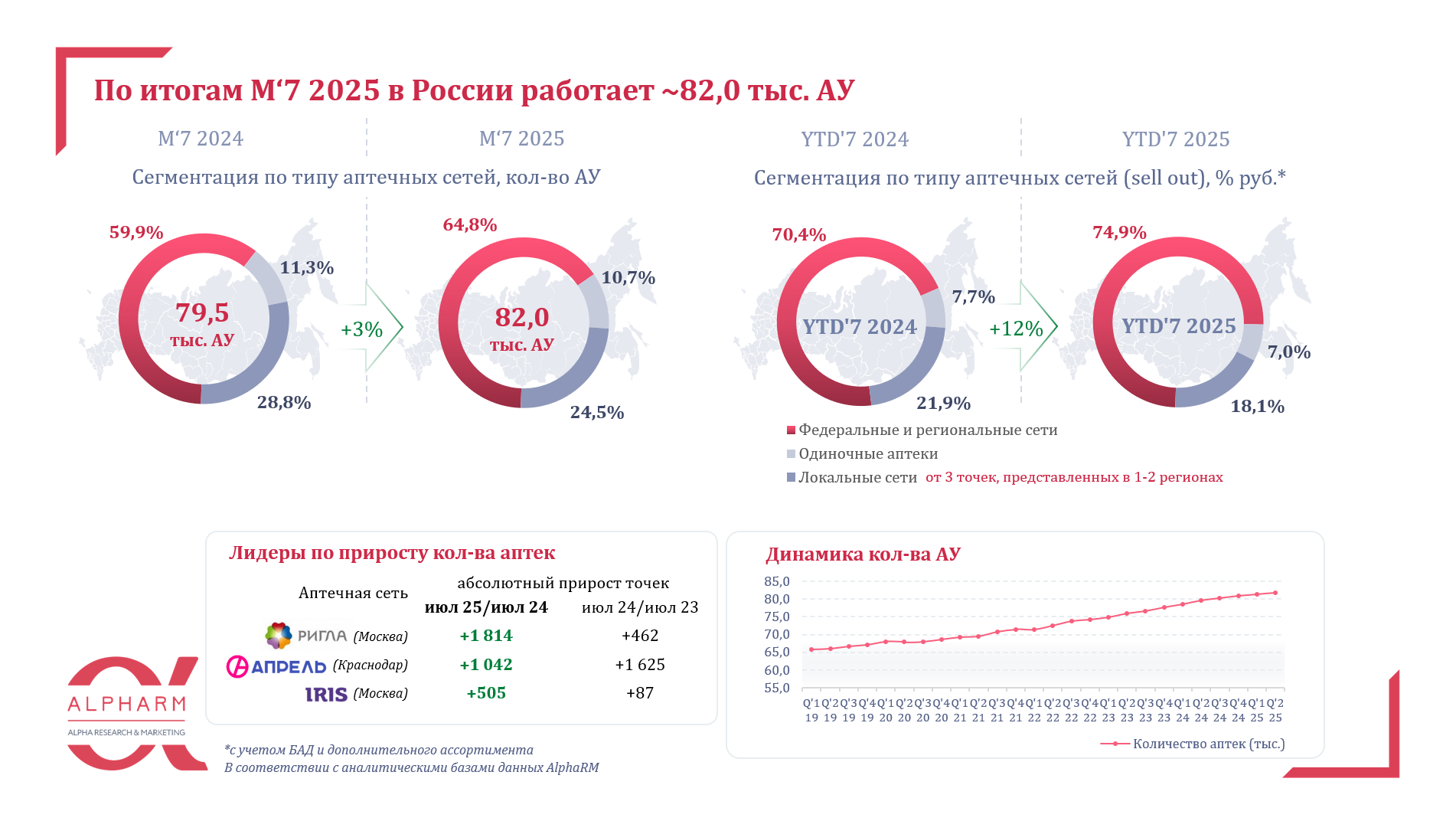 Количество аптек растет за счёт федеральных сетей и уже достигло 82000.
